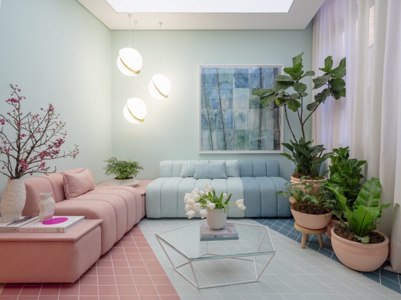Companheiro da tendência rose gold, o rosa millennial também foi presença garantida no décor e na arquitetura de 2019. Uma versão um pouco diferente do “rose quartz” (cor escolhida para o ano de 2016 pela Pantone), esta tonalidade de cor-de-rosa caiu nas graças de grandes marcas de moda e, de lá, rapidamente invadiu as tendências de arquitetura e design.