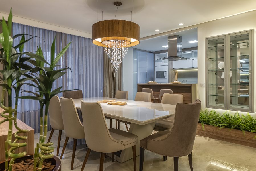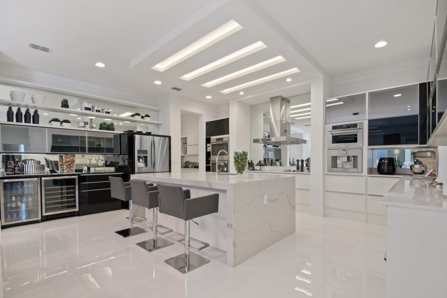 As cozinhas em tons brancos e off-white receberam novo fôlego graças a detalhes de mobiliário e iluminação, apostando em acabamentos espelhados e eletrodomésticos em aço escovado para sair do lugar-comum.
