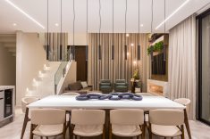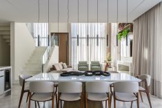 “Sem dúvidas os revestimentos são os protagonistas do projeto. Usados em todos os ambientes e em diferentes soluções, a cozinha tem toda a bancada em porcelanato branco, enquanto a mesa de jantar, com revestimento preto, branco e cinza, protege a parede que se une à bancada-buffet com fundo de marcenaria na mesma proposta” - afirmou a profissional. Confira a matéria completa no link abaixo: