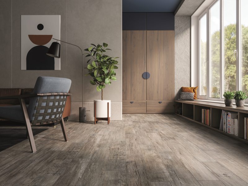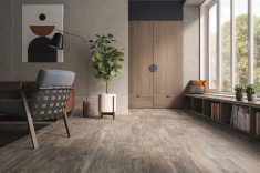 Linha Alvor, da Roca Cerâmica, com acabamento antiderrapante e estética amadeirada