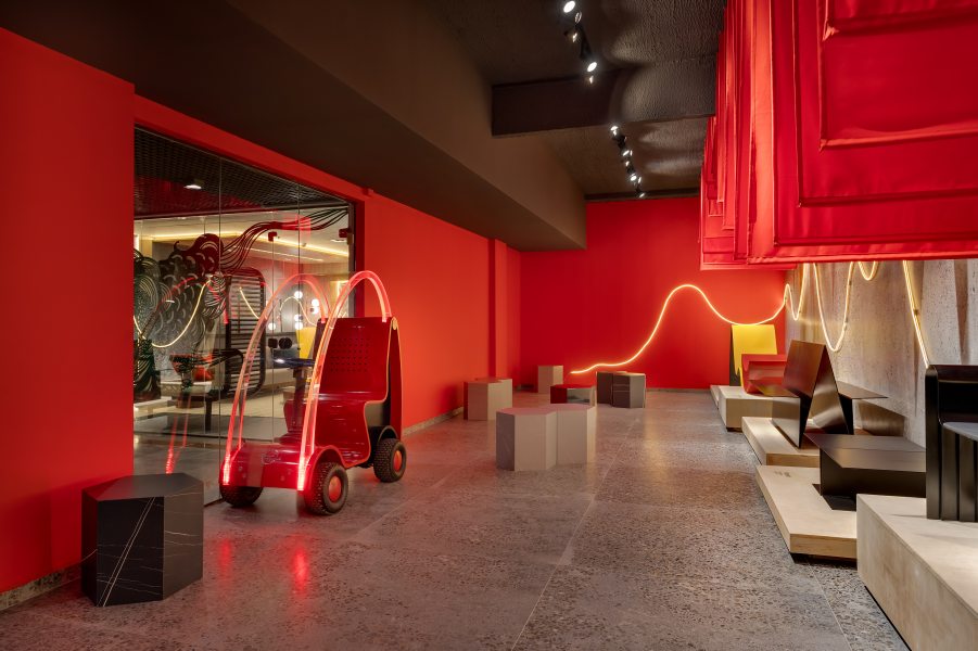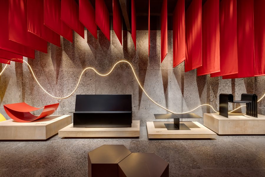 A CASACOR Paraná ocupa o Zoller Building Center, no centro de Curitiba. Ali, o Atelier Jaime Lerner, é uma homenagem de Felipe Guerra e Samira Barakat ao grande arquiteto paranaense. As peças de Lerner ficam dispostas como em um museu e o porcelanato Hangar (120 x 120 cm), da Roca, reveste todo o ambiente e foi escolhido por evocar o concreto e suas nuances. “O concreto, impresso com características do modernismo brutalista, também é amplamente visto nas obras do arquiteto e urbanista Jaime Lerner”, explica a dupla.