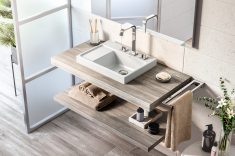 A coleção Optica é versátil e tem diferentes modelos. Abaixo, cuba de sobrepor na cor Perla