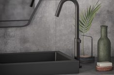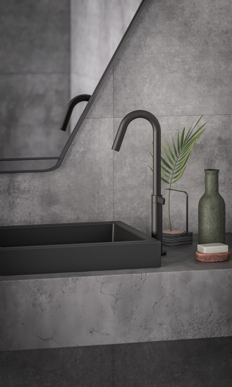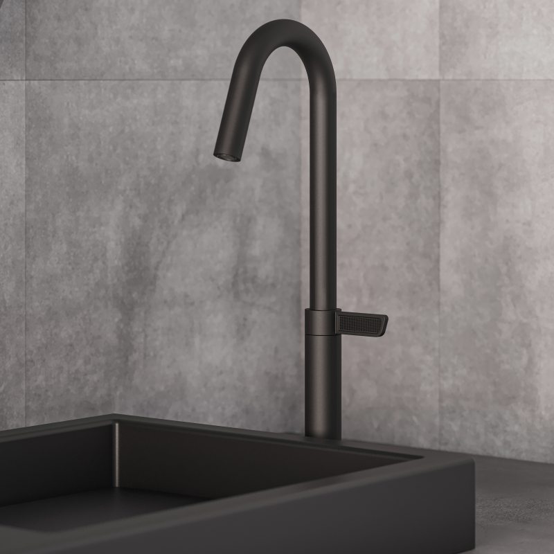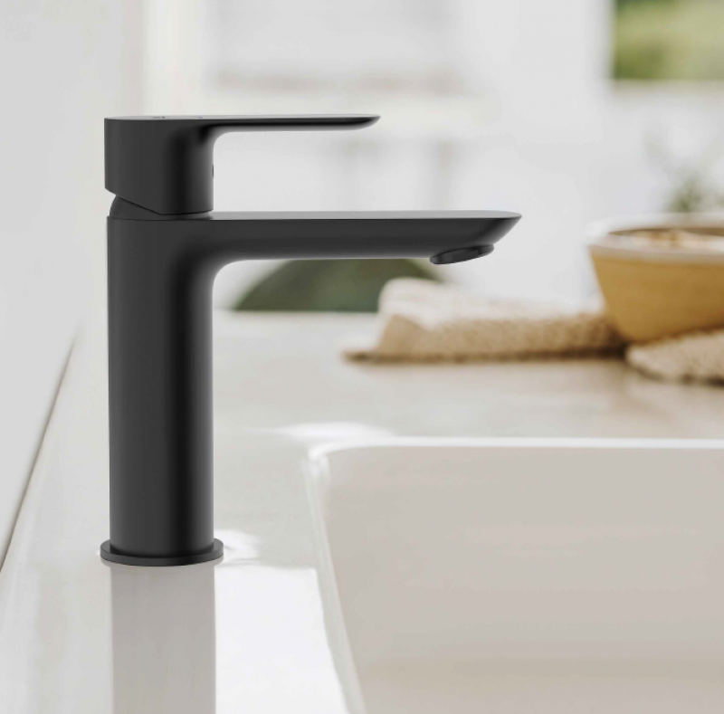 Acima, o misturador para lavatório de mesa, em Matte Black. | Foto: Divulgação Roca