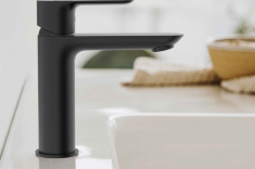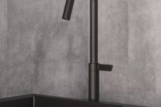 A linha Cala (foto abaixo) possui um design alongado, composto por monocomandos com corpo cilíndrico de apenas 38 mm e acionamento plano retangular em perfeita harmonia com a forma da bica. Versátil, a mesma linha pode integrar toda a casa e está disponível em monocomandos de bica alta e baixa, para banheiro, e monocomando para cozinha, com instalação de mesa e bica extraível, nas cores cromado e Matte Black. Os monocomandos da Coleção Cala possuem ainda um sistema exclusivo de abertura, o Cold Start, capaz de reduzir o consumo de energia elétrica em até 30%.