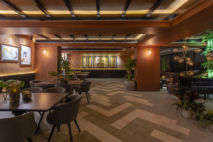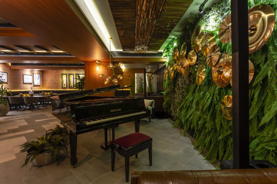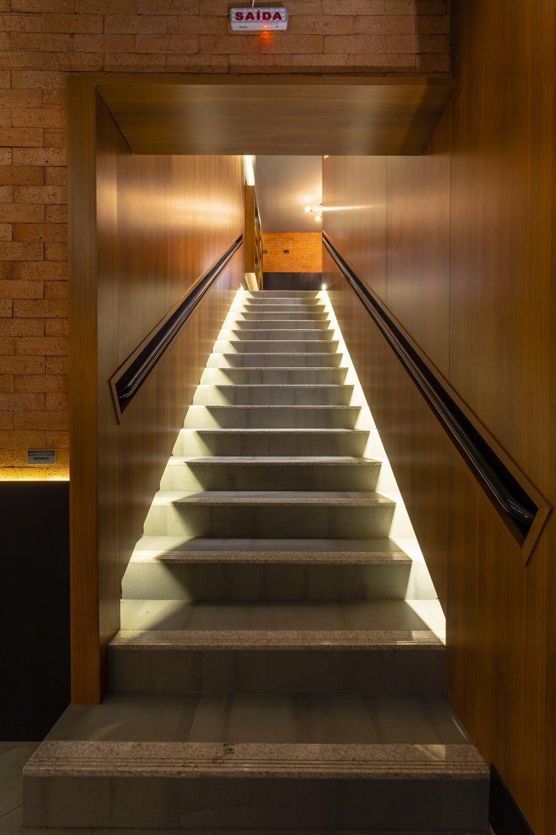 O pub possui cinco divisões: hall superior, salão principal, hall inferior, banheiro feminino e banheiro masculino. Situado no tradicional hotel Plaza Itapema, o ambiente ganhou iluminação feitas com barras de LED, que remetem ao design de um teclado de piano. Confira todos os detalhes abaixo: