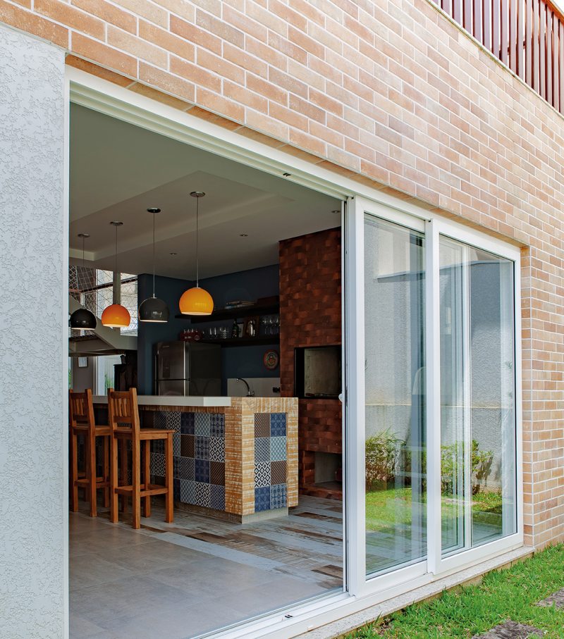 Elementos como madeira natural e tijolo aparente (Portobello Shop) integram-se com as esquadrias em PVC da Weiku, proporcionando o conforto térmico e acústico desejado pelos clientes. “A Weiku nos auxiliou muito, dando toda a consultoria técnica na medição e na montagem, além de os produtos possuírem excelente qualidade em relação ao isolamento térmico e acústico”, afirmam Lisandrea Campanelli e Andrea Sano.