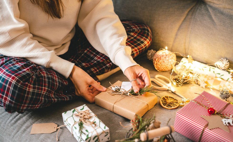 Sem a pretensão de algo sofisticado ou oneroso, os enfeites feitos à mão estão mais relacionados ao sentimento e à dedicação. Seja um embrulho de presente feito de papel kraft, com aplicações ou pintura artesanal, seja uma colagem de galhos secos ou, até mesmo, um cartão escrito à mão, o carinho e a criatividade são o elemento principal.