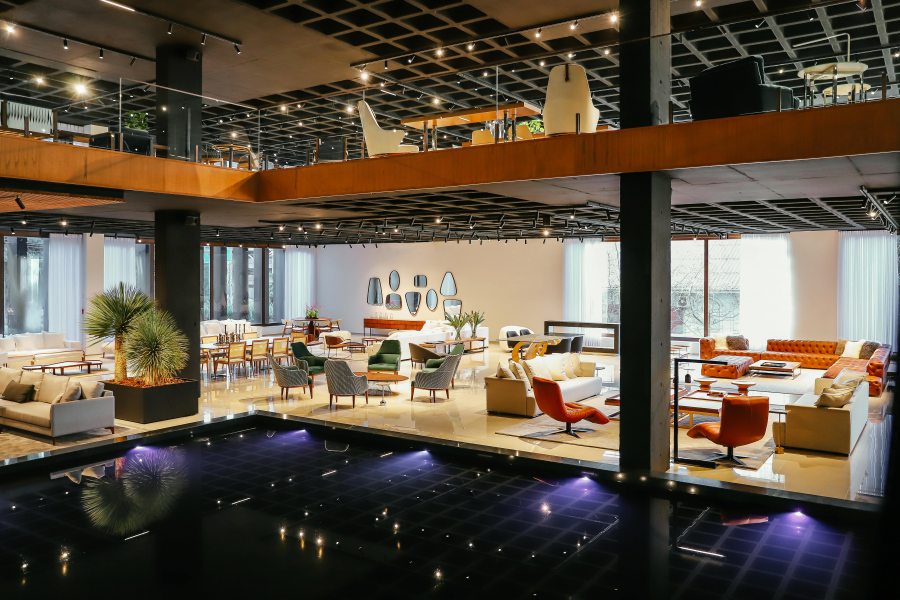 O amplo espaço possui 3200 m² de loja em um dos principais endereços da cidade. São mais de 700 produtos expostos em 25 ambientes, organizados para jantar, living, dormitórios e garden. O projeto contemporâneo une design exclusivo e sofisticação, com acabamentos cuidadosamente selecionados para sugerir composições e entregar aos clientes mais conforto, estilo e soluções.