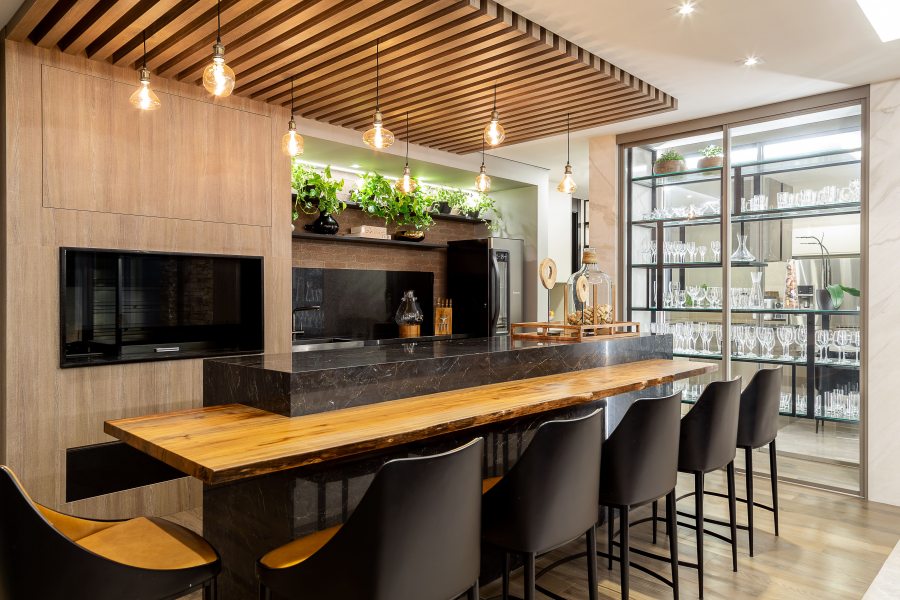 Já a integração dos espaços internos ficou à cargo do mobiliário sob medida da SCA Curitiba, com layout bem-pensado e que promove a conexão entre todos os ambientes da casa. “A SCA deu todo o suporte e o melhor atendimento para a elaboração dos projetos da cozinha, churrasqueira, suítes, salas e living. Desde a conferência dos projetos, até a montagem final dos móveis, a SCA acompanhou tecnicamente e todos os profissionais envolvidos estavam em conjunto para que tudo superasse as expectativas”, celebra o arquiteto.