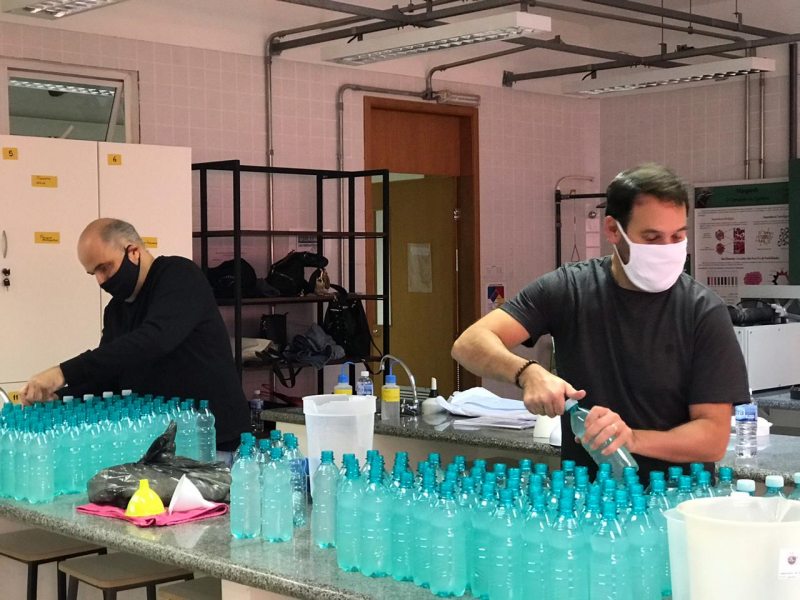 Desde então vários fornecedores se juntaram ao esforço solidário, possibilitando fabricar, envasar, rotular e doar quatro mil garrafas de álcool-gel. Patrocinadores como a Simonetto vem fornecendo álcool in natura à UTFPR, que então fabrica o álcool gel graças a uma rede de voluntários e divide a atividade de embalagem, envase e rotulagem com arquitetos e outros colaboradores voluntários. A Ouro Fino atualmente é a patrocinadora Master desta rede solidária, que conta também com gráficas que produzem rótulos com informações adequadas e dentro dos padrões exigidos pela ANVISA. A rede de colaboradores já produziu e distribuiu 2500L de álcool-gel ao longo das últimas cinco semanas e promete manter as atividades enquanto durar a pandemia. Se o vírus é contagioso, a solidariedade é mais ainda. Veja mais fotos em nossa galeria!
