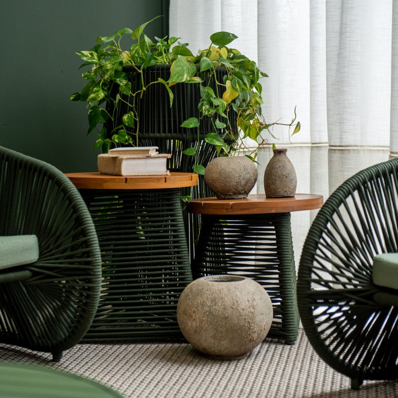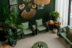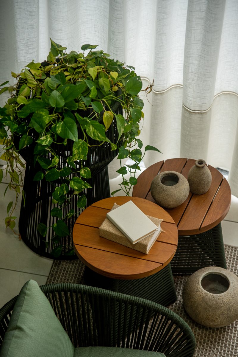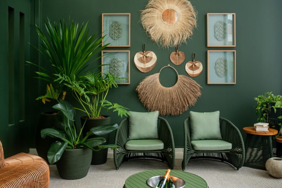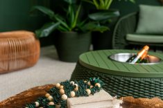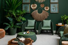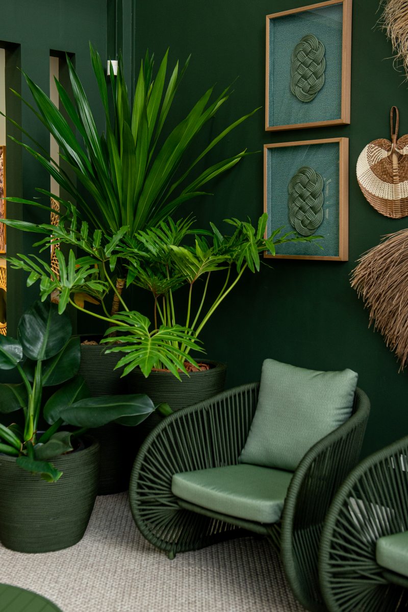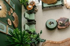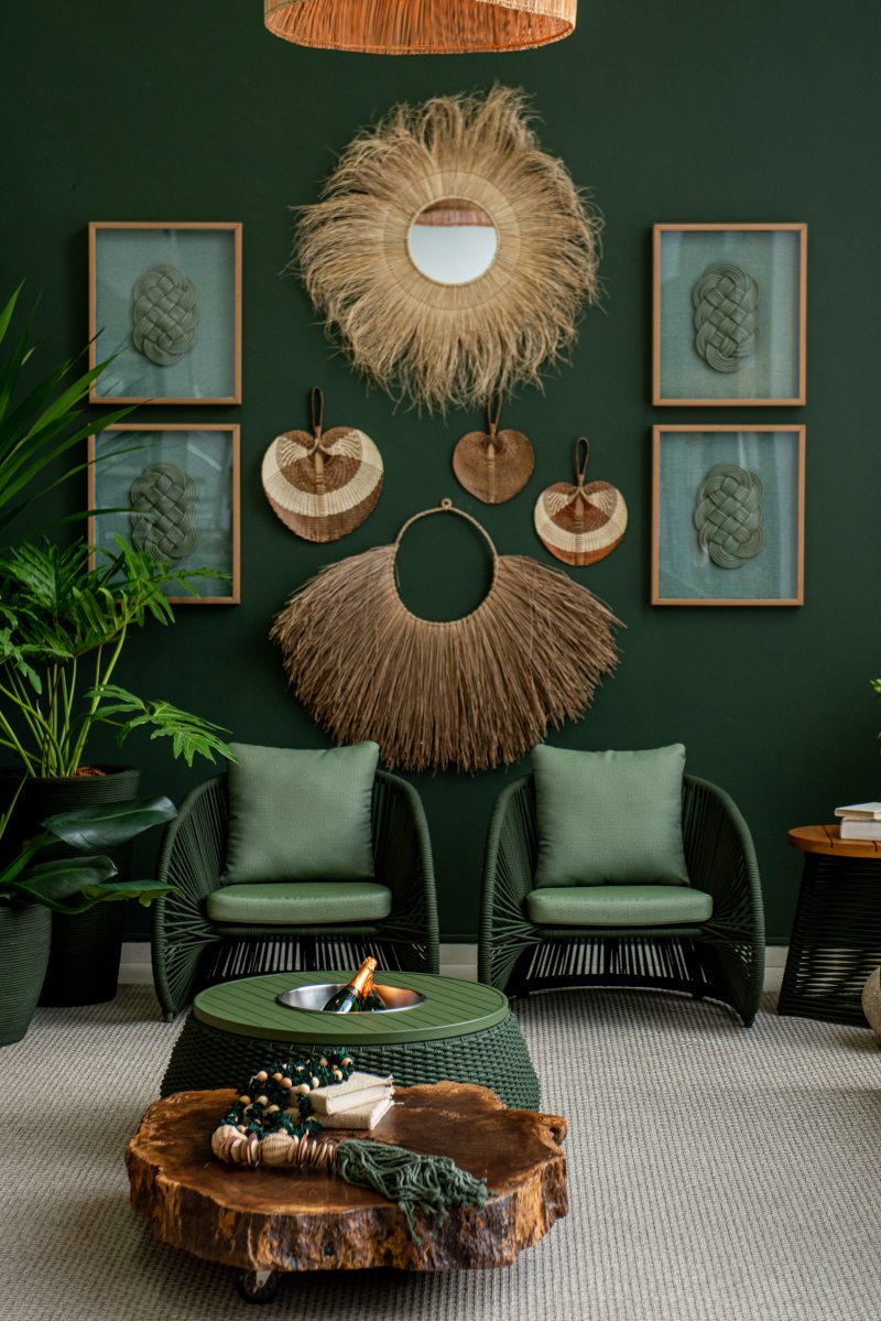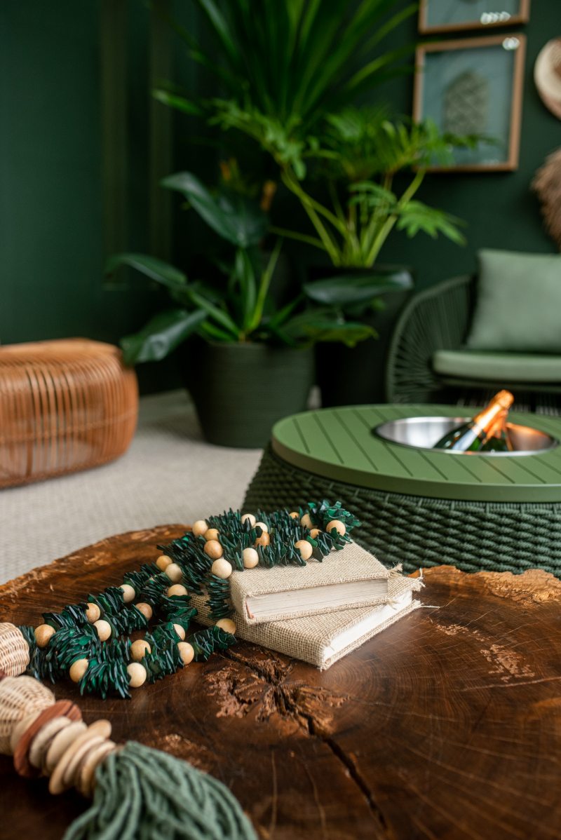 Com inspiração na Natureza, Luciana buscou no verde a sensação de paz e relaxamento presentes em suas memórias de férias na fazenda e trouxe elementos rústicos aplicados com elegância como o sofá em fibra natural e a mesa de centro em madeira bruta que deixou o espaço ainda mais acolhedor. Em um grande living, os sofás com linhas predominantemente curvas em tonalidade verde criam um espaço fluído e harmonioso arrematado por vasos e plantas que garantem a energia e vitalidade do espaço. A mesa de centro champanheira é um convite a esta celebração. “A Raffinato evoluiu muito ao longo desses 23 anos, e esta busca por evolução contínua pode ser percebida em seus produtos através do design, da qualidade e da versatilidade que busco para dar personalidade aos meus projetos.” comenta Luciana Baggio.