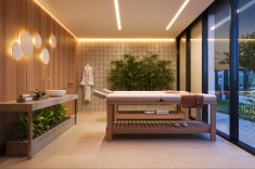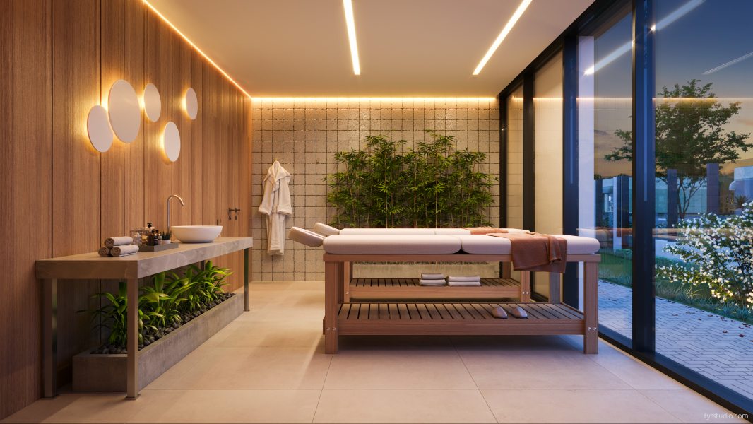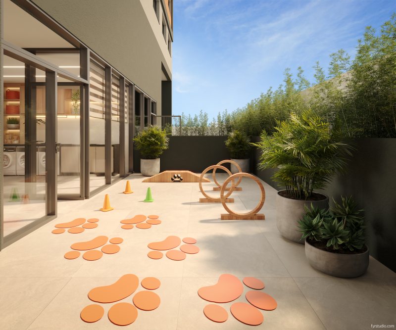 Outro destaque do empreendimento são as áreas comuns: mezanino aberto, lareira ao ar livre, espaço zen, espaço gourmet, salão de festas, academia, SPA, espaço pet, lavanderia, mini-mercado, bicicletário e espaço de estudos/co-working estarão à disposição dos usuários.