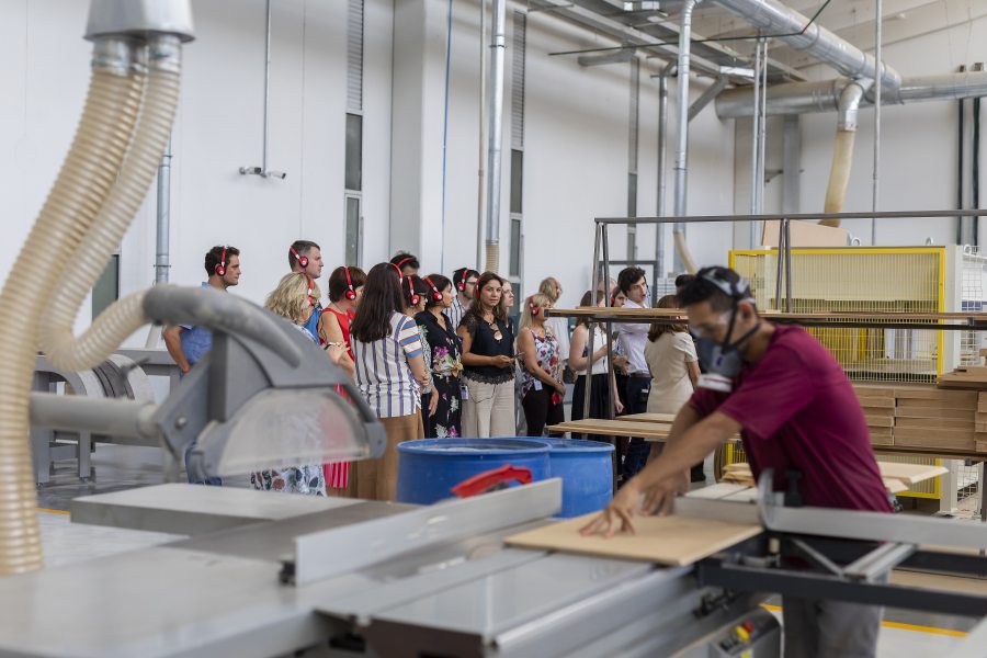 Para apresentação da nova sede da Breton, a empresa convidou um seleto grupo de arquitetos curitibanos para um tour guiado. A recém-inaugurada fábrica e centro de distribuição, localizada em Diadema, conta com 15.000 m² e traz grandes novidades, como a unificação de todas as operações e departamentos, alinhando a fabricação de móveis, logística, reciclagem de embalagens e escritórios administrativos.