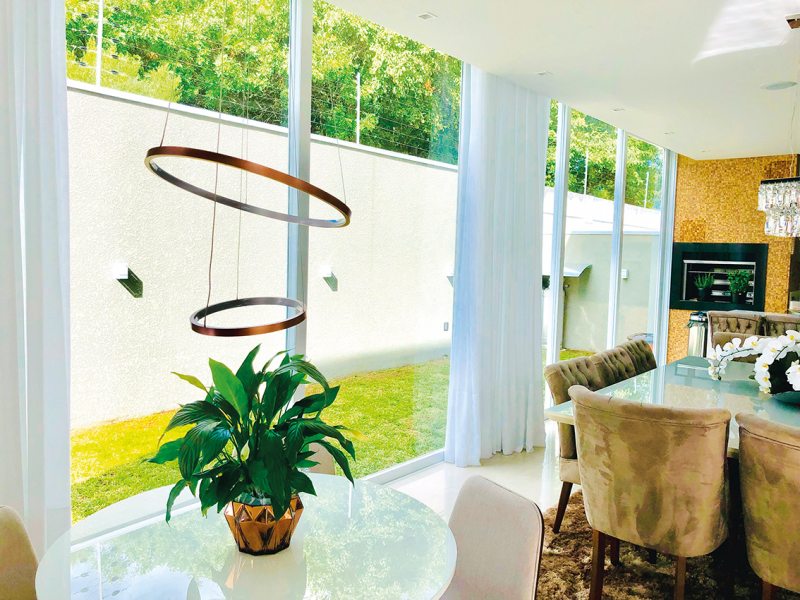 O desejo da família, composta por um casal e um filho adolescente, era morar em uma casa com traços modernos, espaços integrados e grandes aberturas. Para isso, o escritório Shafa Arquitetos apostou num projeto de residência quase transparente, com projeto estrutural de Eliane Lima, esquadrias de grandes formatos e vidros da Europa Esquadrias de PVC, que proporcionaram luz natural abundante e integração total com o entorno. “Optamos pela Europa Esquadrias pela qualidade dos materiais e excelência na execução. Desde a criação do projeto, a loja colocou-se à disposição com forte apoio técnico. Assim, tive toda a liberdade e suporte para criar grandes dimensões na abertura, dando a maior segurança possível ao cliente, sem deixar de valorizar a arquitetura”, comenta o arquiteto Amir Shafa.