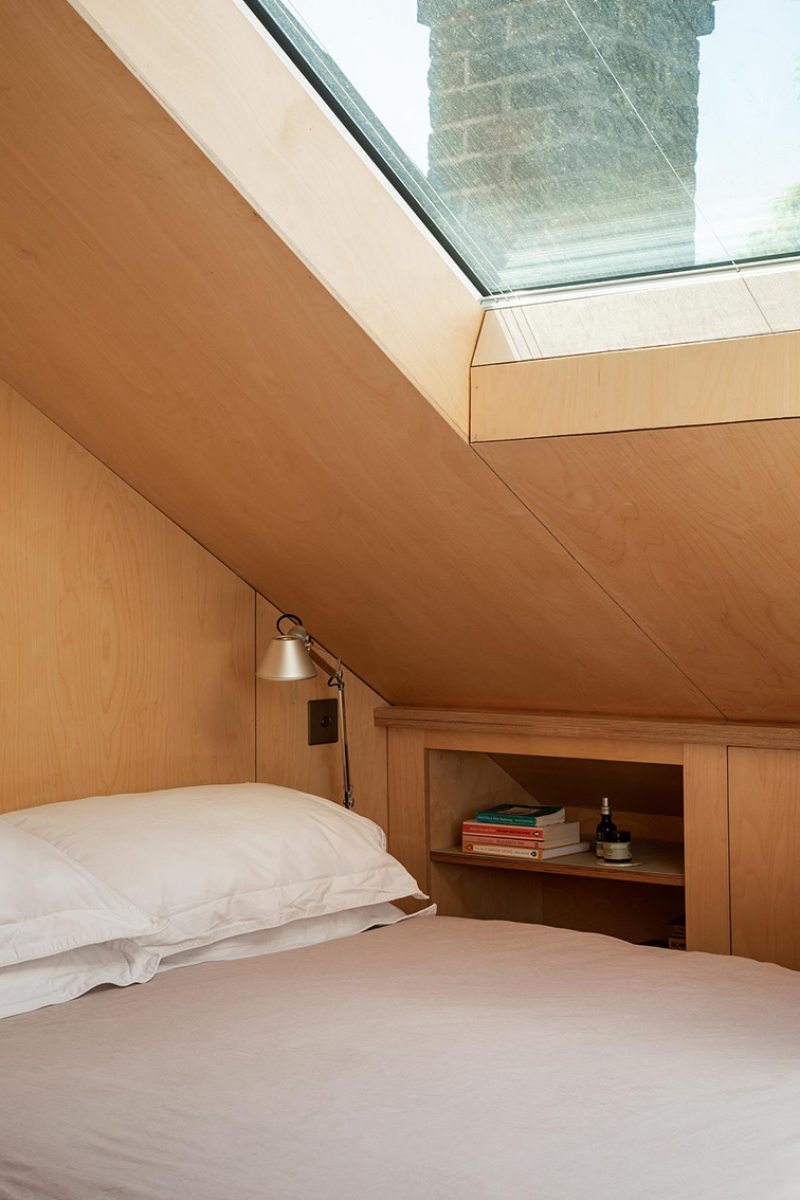 Era essa a situação do sótão antes negligenciado e relegado ao armazenamento, que foi cuidadosamente reinventado e transformado em quarto com banheiro e escritório. Assinado pelo escritório inglês Turner Architects, o antigo espaço foi completamente ressignificado. Em vez de ser lido como uma adição, o espaço parece incorporado à arquitetura existente, como se sempre estivesse esperando para ser descoberto.