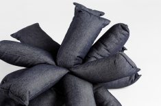 Galeria Coleção Jeans - O Instituto Campana e o Projeto Arrastão se uniram para desenvolver uma coleção de objetos e móveis feitos de jeans reciclados Vasos Tijolos? Os vinte assistidos pelo projeto Aliança de Misericórdia ? homens em situação de risco -, em uma comunidade de Piracicaba (SP), recebem workshops semanais de Humberto Campana, em parceria com o Instituto Campana, no qual são estimulados a criar peças artesanais com materiais predominantes da região