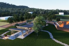 Do ponto de vista construtivo, o Arví segue diretrizes ESG desde a concepção. O projeto adota materiais certificados, como madeira com selo FSC, técnicas como taipa de pilão e madeira laminada colada nas áreas comuns, além de soluções de drenagem natural, ruas em saibro e jardins de chuva que favorecem a permeabilidade do solo. Cercas vivas permitem a circulação de animais, reforçando a integração com o ambiente natural.