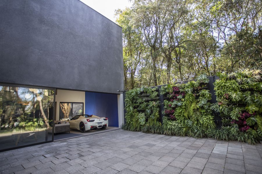O paisagismo, com jardim vertical, integrou o ambiente à natureza exuberante do bosque de preservação no entorno para um toque extra de bem-estar.