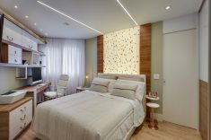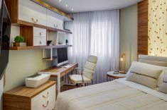 Criar um quarto leve, com cores e texturas que remetem à natureza para oferecer a tranquilidade e conforto, para os momentos de estar de volta em casa. Esta foi a proposta para o projeto de reforma do quarto da menina, assinado pela arquiteta Simone Carneiro: “Havíamos feito uma primeira reforma há sete anos, quando compraram o apartamento e os filhos eram mais novos, o menino com dez e a menina com quinze anos. Hoje, a filha trabalha e estuda fora da cidade, tornando necessária a readequação de seu quarto”, conta.