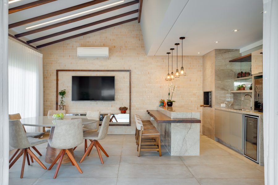 A ciência comprova: passar tempo ao lado de quem nos faz bem aumenta a saúde, o bem-estar e até a expectativa de vida. Com tantos benefícios não é à toa que a família de moradores desta residência no bairro São João, em Curitiba, resolveu investir em um espaço de lazer completo. A arquiteta Simone Carneiro recebeu dos clientes – um casal com filhos adultos que adoram receber os amigos – a tarefa de otimizar espaços e acrescentar conforto e praticidade às confraternizações.