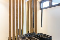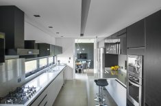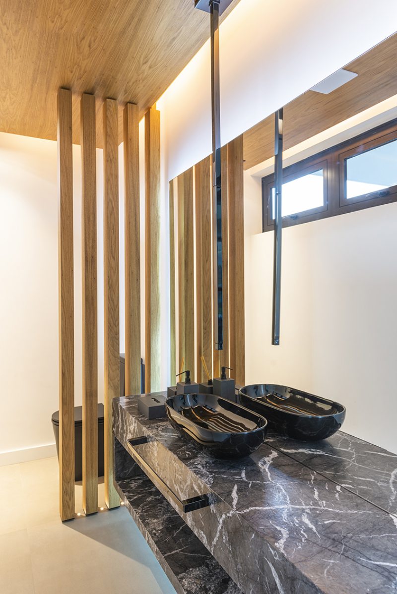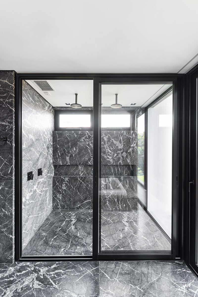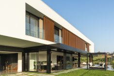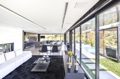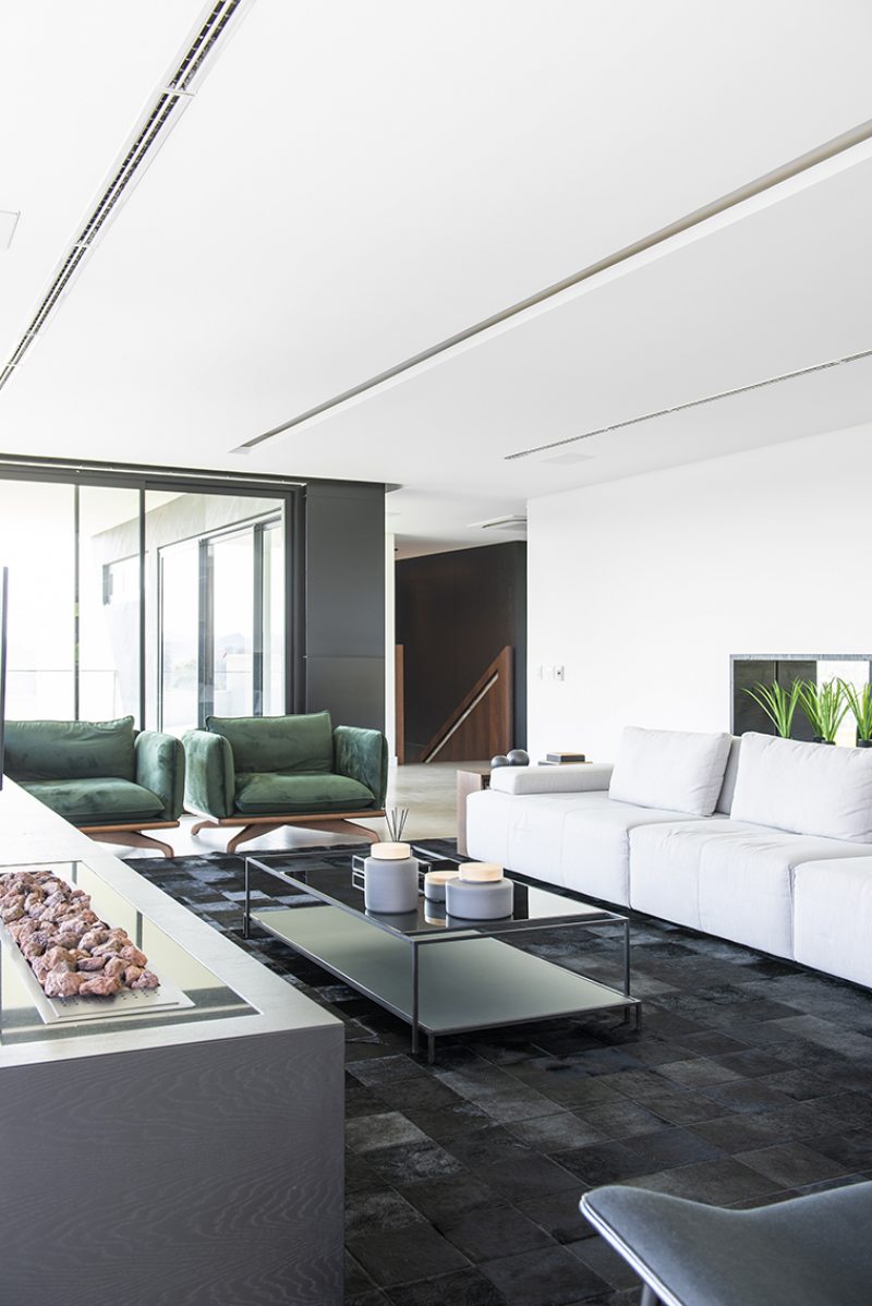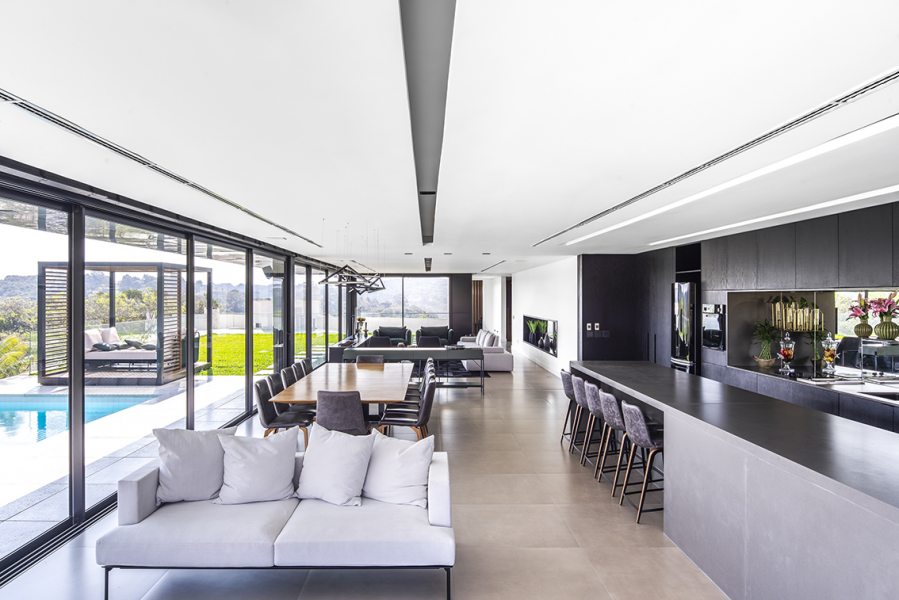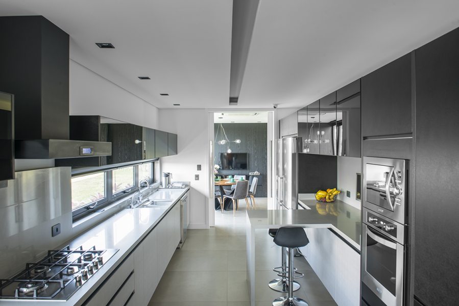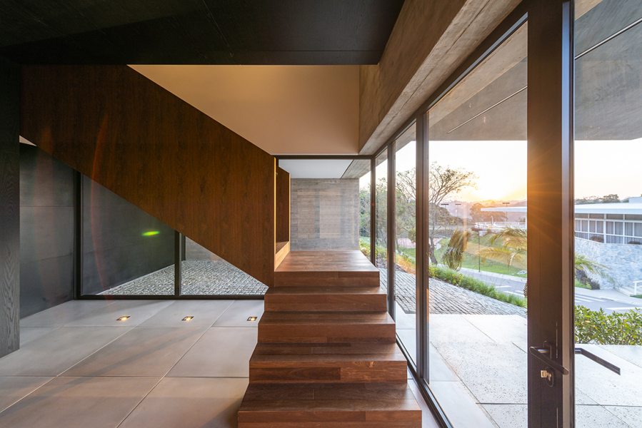 “Um projeto sempre é resultado de vários fatores. Necessidades e vontades dos clientes precisam ser associados às condições naturais do terreno. Neste caso, para superar a topografia desafiadora, o subsolo foi implantado a seis metros do nível da rua interna do condomínio e criamos um jardim sobre laje. Assim, todos os ambientes do térreo tem acesso ao jardim.” – afirmou a arquiteta Mariana Manzoni.