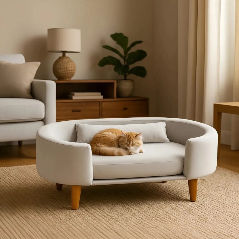 Com o aumento da demanda, o mercado passou a oferecer produtos em diferentes níveis de design e preço. Há desde soluções simples vendidas em pet shops e grandes redes de varejo até peças assinadas por designers e produzidas por marcas especializadas. Empresas internacionais como Pet Interiors, Mau Pets e Pet Empire trabalham com camas, sofás e estruturas para gatos desenvolvidas com materiais semelhantes aos do mobiliário residencial, como madeira, tecidos estruturados e espuma de alta densidade.