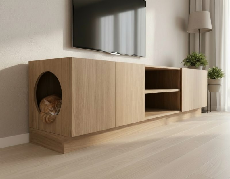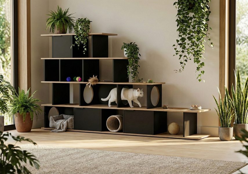 Quem vive com cães ou gatos sabe que o espaço deles também precisa ser considerado na casa. Camas, arranhadores, nichos e móveis planejados para pets começam a aparecer com mais frequência nos projetos de interiores, refletindo o crescimento do conceito pet-friendly no design doméstico.