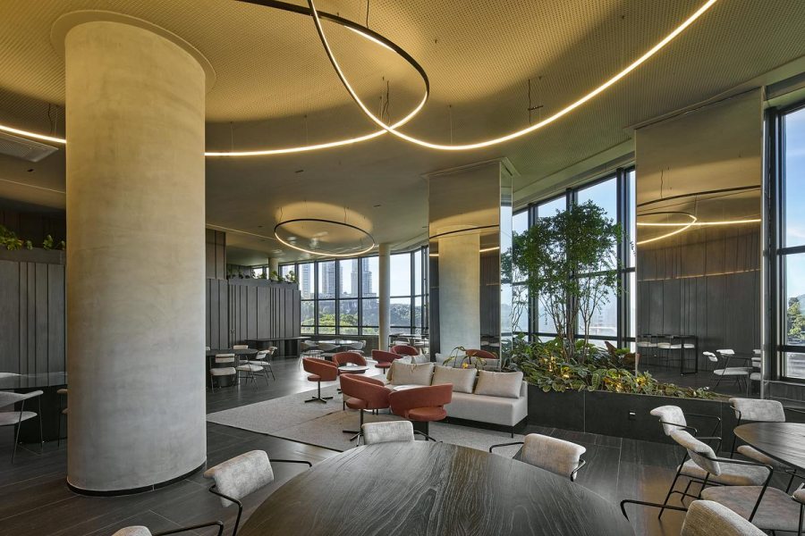 O conceito também nasce de uma referência afetiva. O arquiteto Henrique Hoffman cita as casas rurais de Minas Gerais como ponto de partida — lugares de pé-direito generoso, mezaninos acolhedores e janelas que revelavam o horizonte. No Ed Miró, essas memórias são reinterpretadas em um arranha-céu de 40 pavimentos e 18.244 m² de área construída, onde a estrutura vertical não impede a sensação de amplitude nem a entrada de luz por diferentes ângulos.