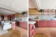 Onde: São Paulo • 30 de Janeiro - 2026 | Fotos Mariana OrsiProjeto do Studio 92 Arquitetura reorganizou o apartamento compacto em São Paulo através da marcenaria sob medida e uso expressivo da cor rosa.