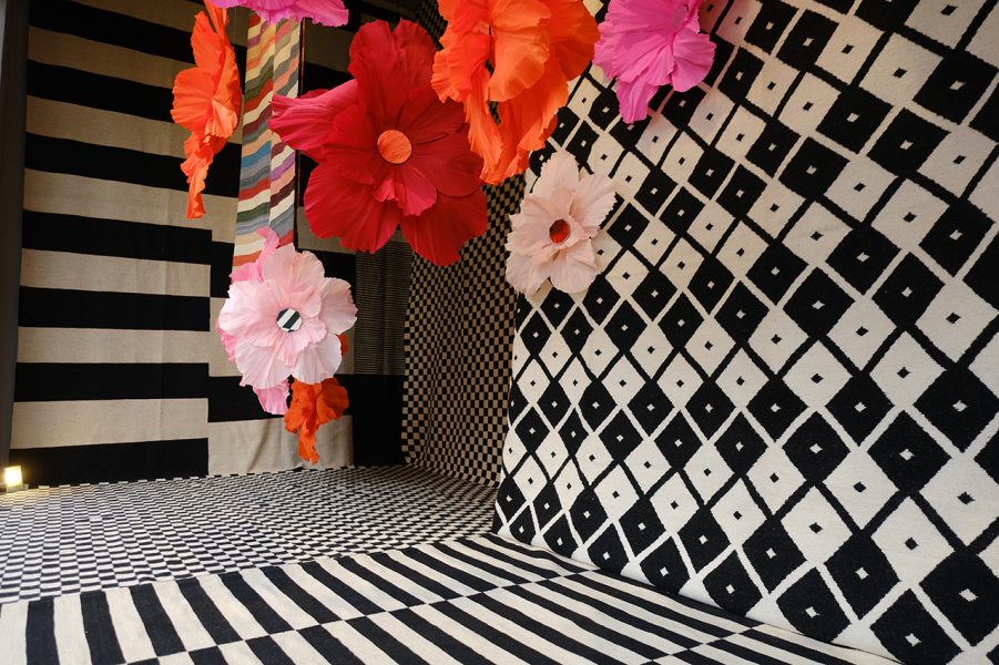 Ainda em Curitiba, o Bo. Arch Studio, comandado pelas arquitetas Marina Carvalho e Thalita Peron, ganha destaque em dois momentos importantes. A dupla assinou a nova vitrine da Botteh Handmade Rugs, inspirada no paisagismo de Burle Marx e na vitalidade de A Primavera, de Vivaldi. O espaço transformou tapetes em protagonistas de um cenário artístico, com blocos de cor vibrantes e flores gigantes criadas por Jacqueline Benevides, que ficarão em exibição por três meses.