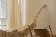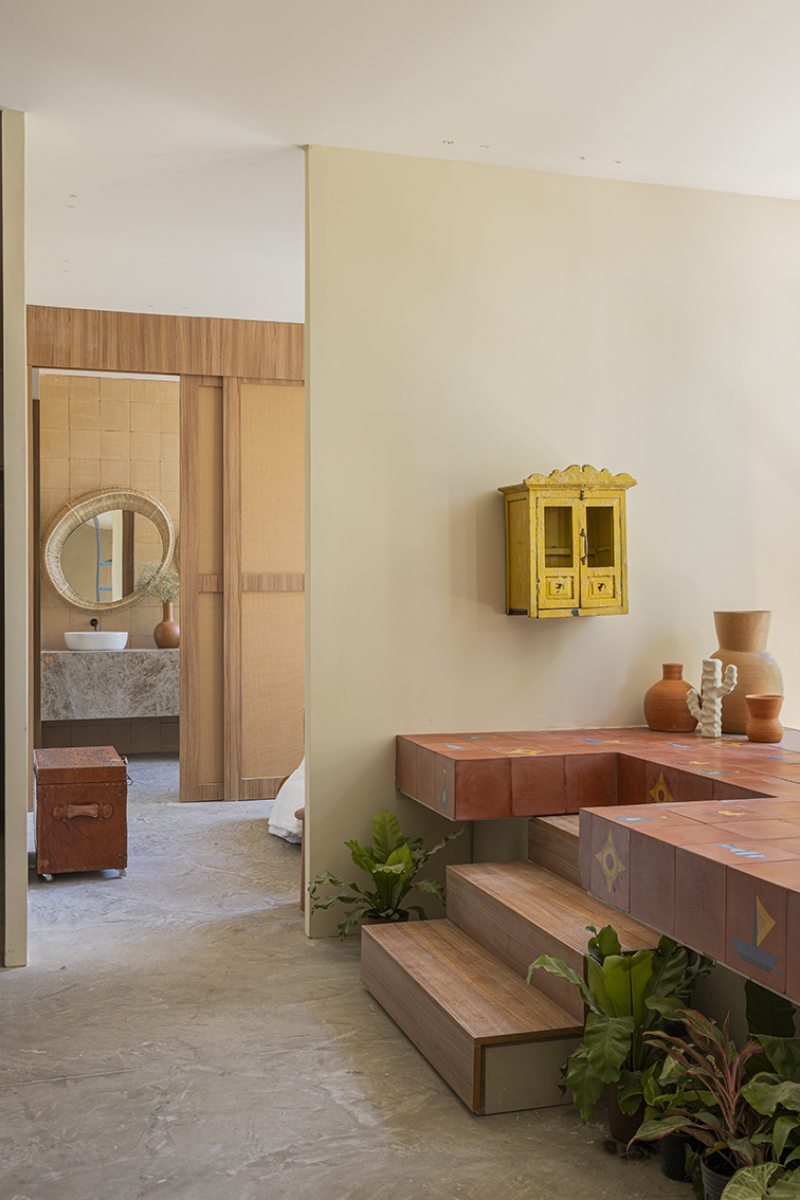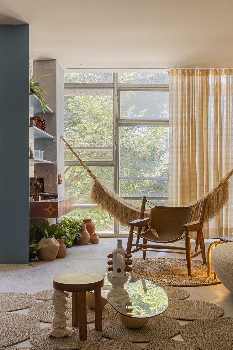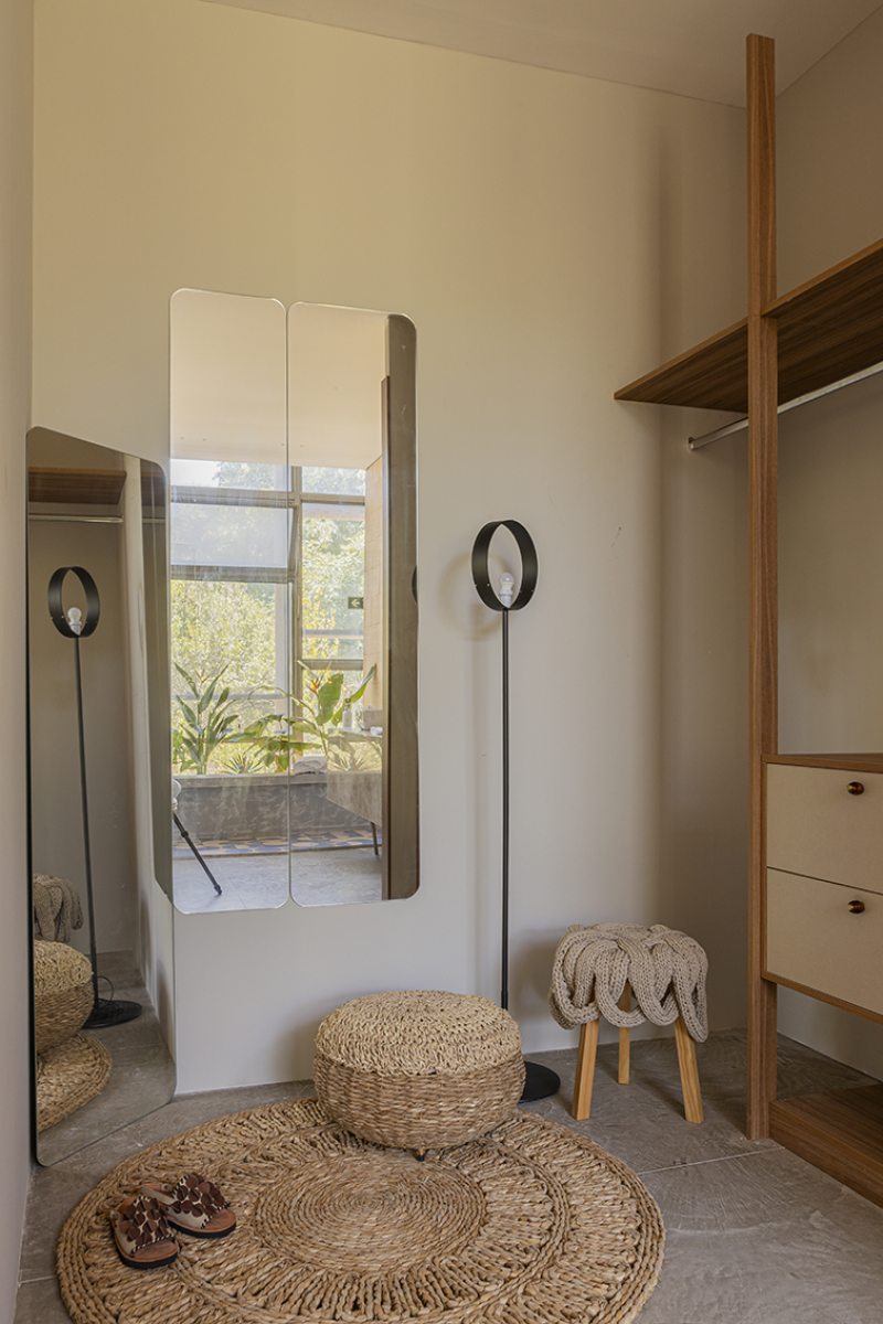 O projeto parte da ideia de uma casa clara e acolhedora, inspirada na rotina simples de quem vive próximo ao mar. A rede, símbolo de descanso e de férias, não poderia faltar e tem no desenho da jangada sua principal inspiração. A referência aparece também no escritório elevado, concebido como um volume leve que sugere estar suspenso entre o vento e o horizonte.
