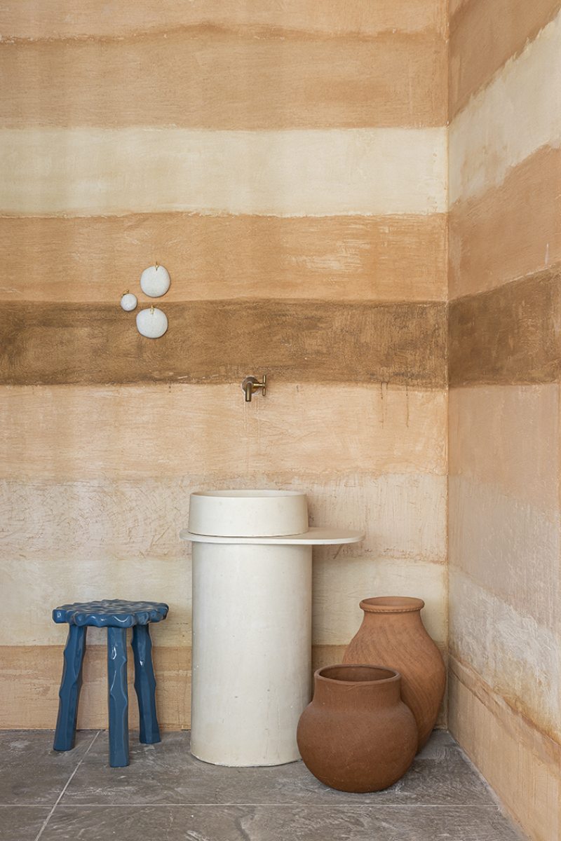 A instalação utiliza luz natural, texturas e vazios para criar uma atmosfera ventilada e leve. A circulação do ar e a luminosidade filtrada ajudam a construir uma experiência sensorial que remete à brisa e ao ritmo desacelerado das cidades costeiras.