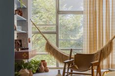 Entre os projetos está a Casa de Maria, que representa o Ceará na Bienal com a instalação “É o Mar”, assinada pela arquiteta Larissa Lima, do escritório ARK Arquitetura & Interiores. O espaço recria uma moradia completa, com varanda, salas de estar e jantar, cozinha, escritório, quarto com suíte e área de serviço. A proposta convida o visitante a percorrer os ambientes como se estivesse dentro de uma casa real.