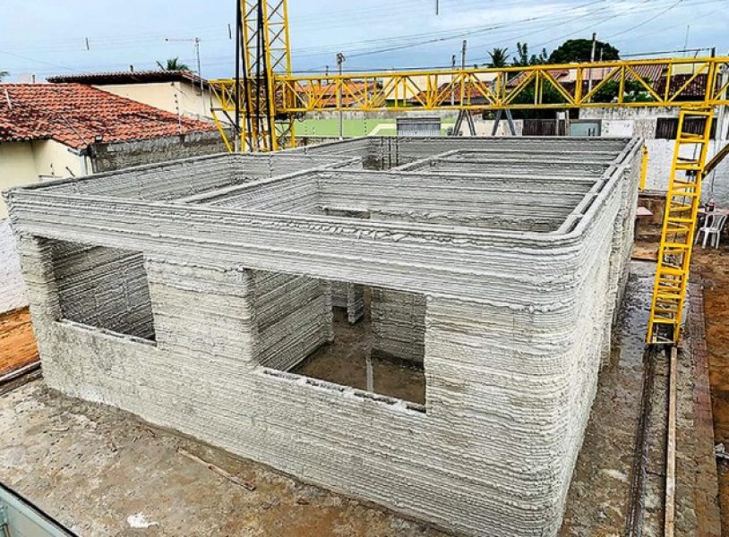 No Brasil, a tecnologia já aparece em frentes com foco social, voltada para pessoas de baixa renda. Um dos exemplos está em Santa Cruz Cabrália (BA), onde uma casa de 57 m² (fotos) foi produzida na fábrica: as peças foram impressas, transportadas e montadas no terreno.