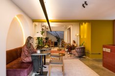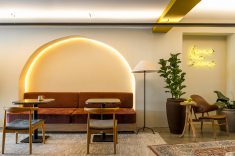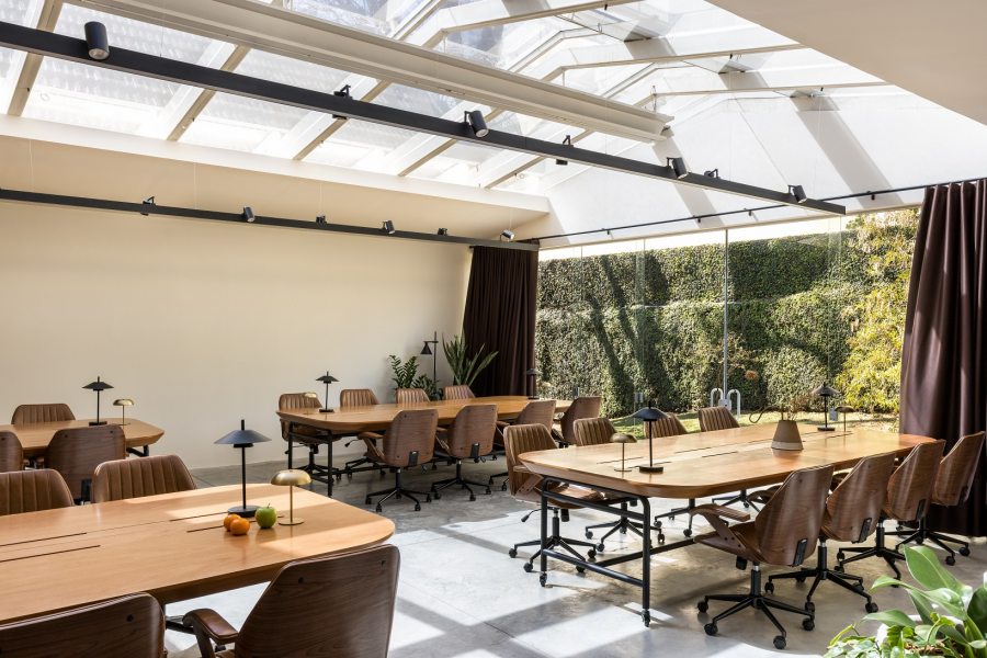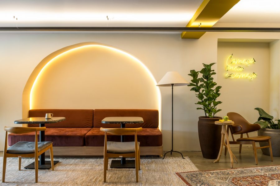A arquitetura assinada pelo estúdio Ete Oficina valoriza a convivência e o bem-estar, transformando cada ambiente em um convite à permanência. Materiais naturais, tecidos aveludados, cores quentes e peças que misturam o vintage ao contemporâneo compõem um cenário acolhedor, com forte presença estética e sensorial. Mesas coletivas, áreas moduláveis e integração entre interior e exterior criam uma atmosfera de leveza e amplitude — onde o verde atravessa as janelas e o espaço convida à troca e à criação.