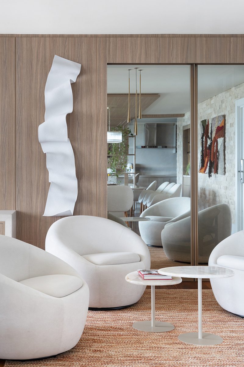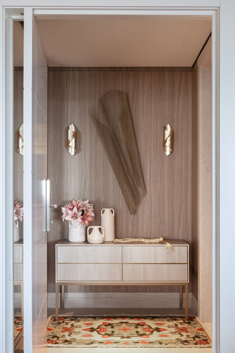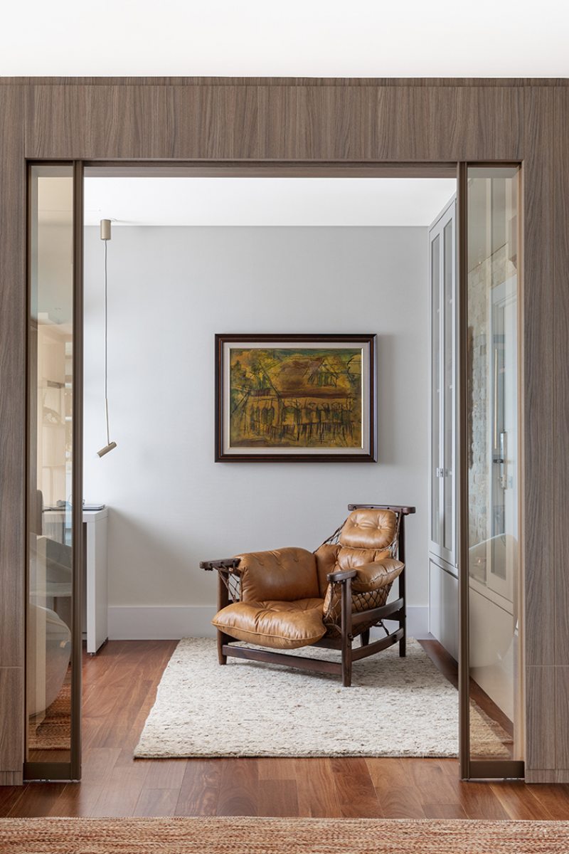 A obra, realizada no apartamento adquirido ainda na planta, levou dois anos para ser concluída, em um processo deliberadamente sem pressa — com tempo necessário para que escolhas ganhassem sentido e lugar.