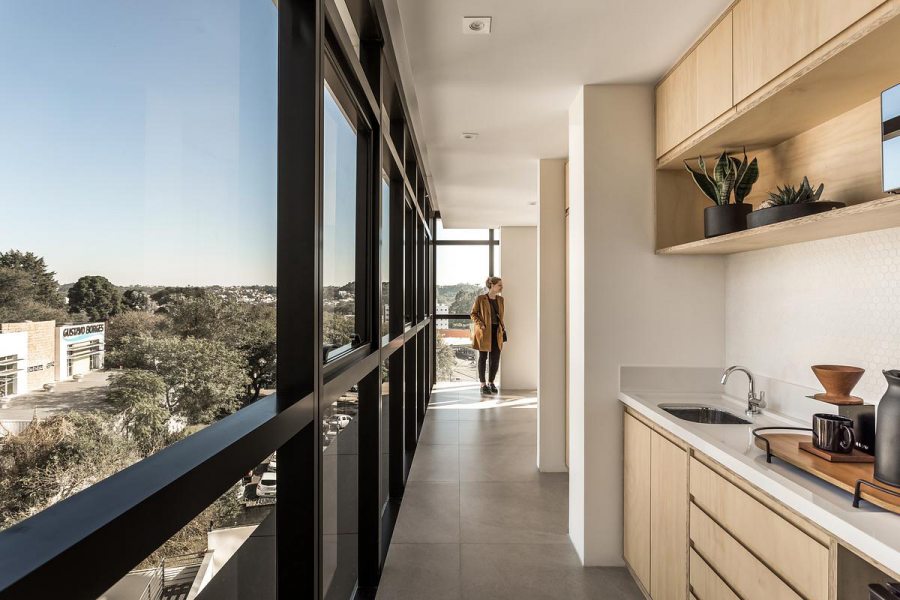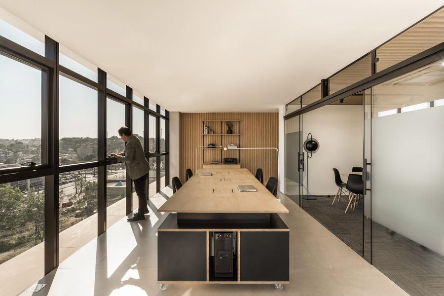 “Desde o início, nos deparamos com a incrível vista panorâmica da sala comercial para um dos maiores parques da cidade, o Parque Barigui. Sendo assim, buscamos valorizar essa qualidade do espaço através da organização das funções na planta livre”, ressaltam os profissionais.