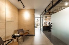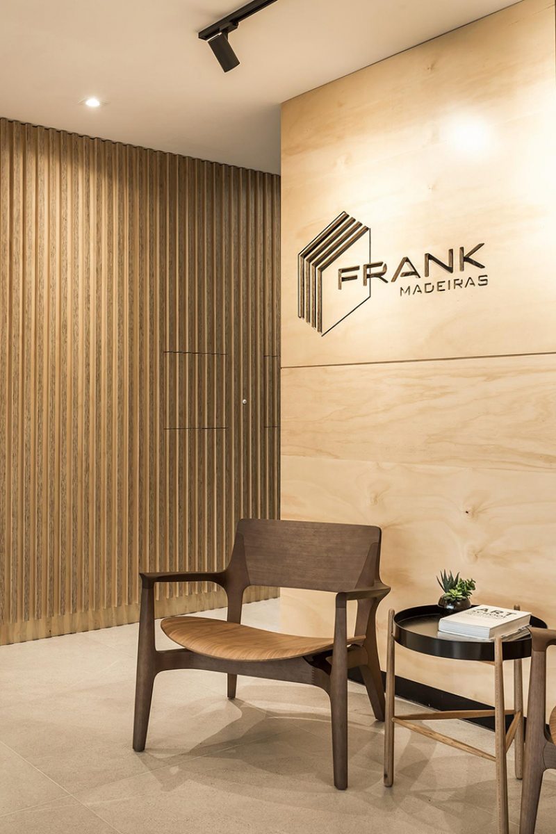 Integrar o espaço de trabalho foi sempre a principal condicionante para a realização do projeto do escritório Frank Madeiras, desenvolvido pelo escritório Solo Arquitetos. O cliente, uma empresa de madeiras com sede administrativa em Curitiba, buscava construir um espaço que funcionasse não apenas como área de gerência, mas também como "showroom" para receber clientes.