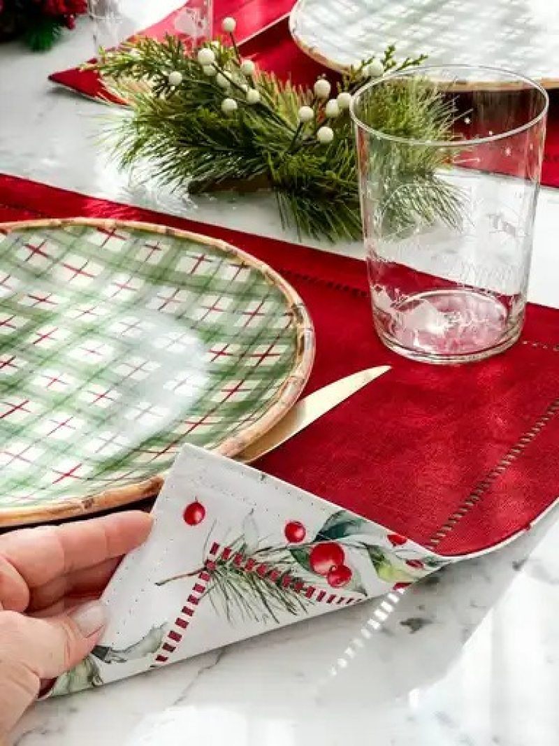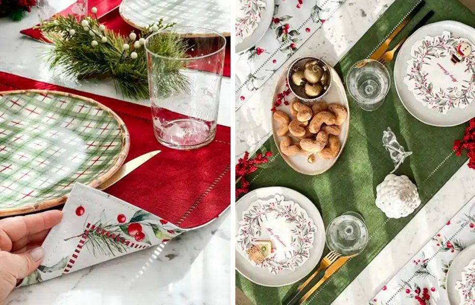 Jogos americanos, guardanapos, cachepots, pratos, sousplats e capas de almofadas integram a linha de Natal assinada por Rebeca Duarte Home.