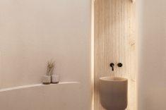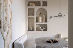 Um bom exemplo é o projeto assinado pela arquiteta Diane Justus para um apartamento em Curitiba. Materiais naturais, texturas táteis, curvas suaves e iluminação difusa desempenham um papel central na construção da atmosfera dos ambientes.