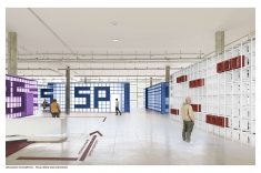 Além da estética, a sustentabilidade é uma constante no projeto. A proposta prevê reaproveitamento de mármores de jazidas paranaenses, painel de micélio desenvolvido por startup local, ventilação cruzada favorecida pela implantação, reuso de água e a predominância de materiais atemporais e duráveis.