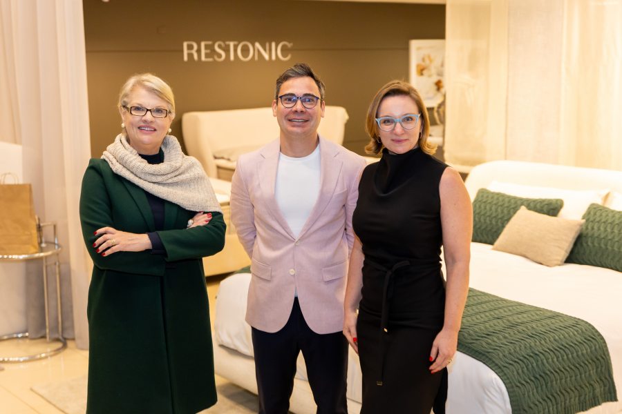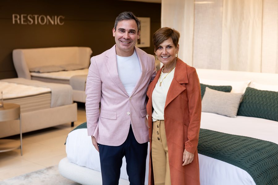 A Restonic também ganha espaço com a linha Imatress, que combina camadas tecnológicas como espuma Ultracel Coopercooling, infusão de cobre com ação bactericida e látex Dunlop, resultando em maior conforto e eficiência na dissipação de calor. Já as camas articuladas Ergomotion prometem benefícios que vão do relaxamento da coluna à redução de dores e estresse, com design contemporâneo, ajustes personalizados e recursos como controle remoto, saída USB e iluminação inferior.