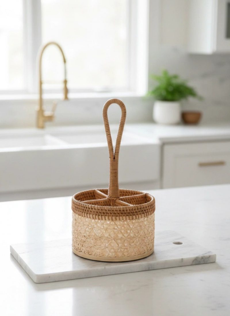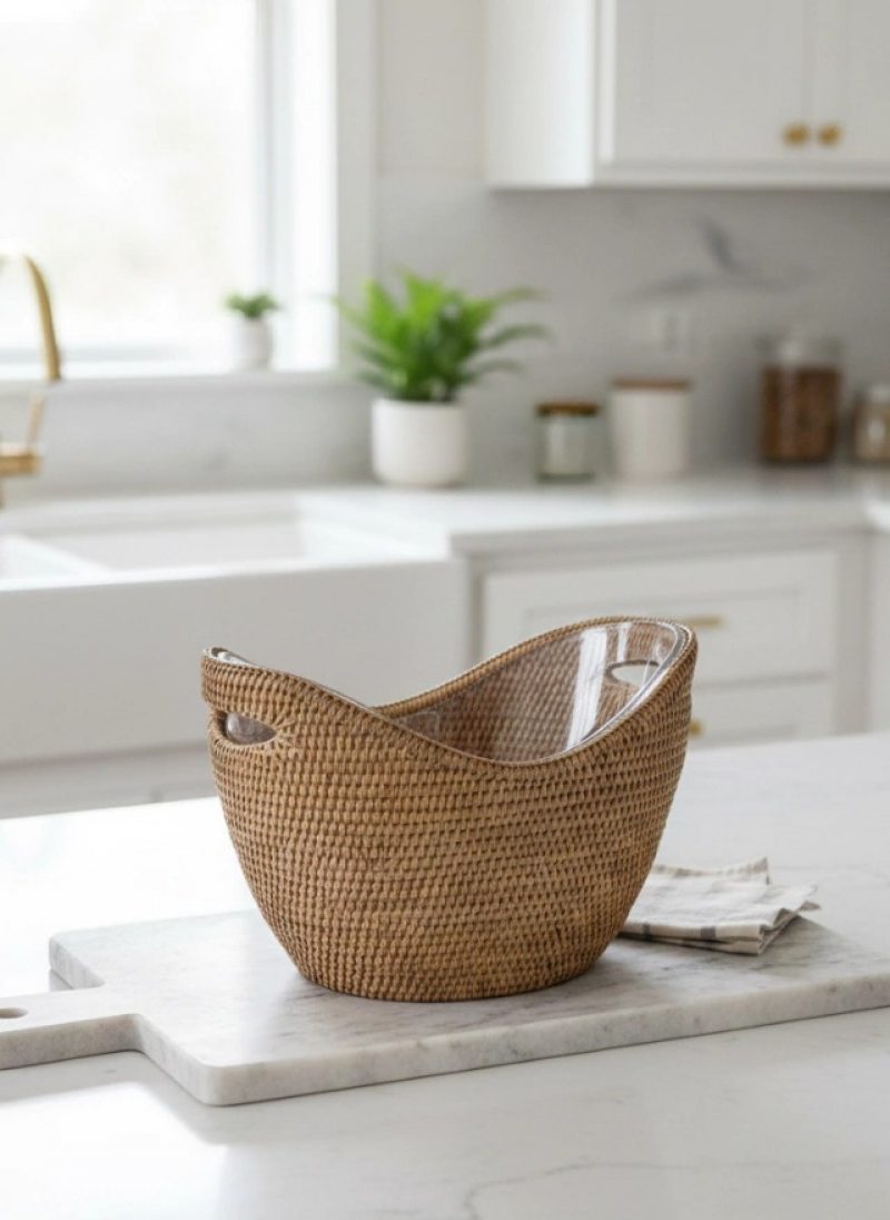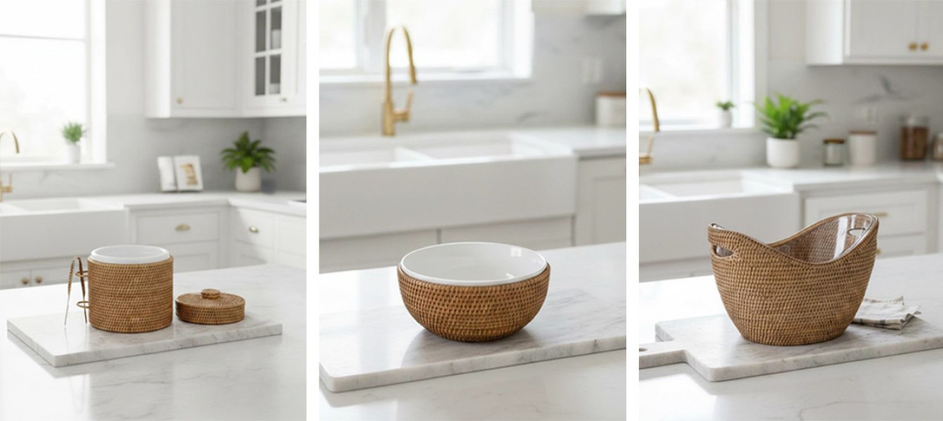 Outro destaque entre os lançamentos é o uso de materiais naturais, com o rattan da marca A Sua Mesa Suas Vontades. Leve, versátil e atemporal, o material aparece em móveis, bandejas, objetos decorativos e itens para a mesa.