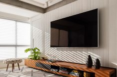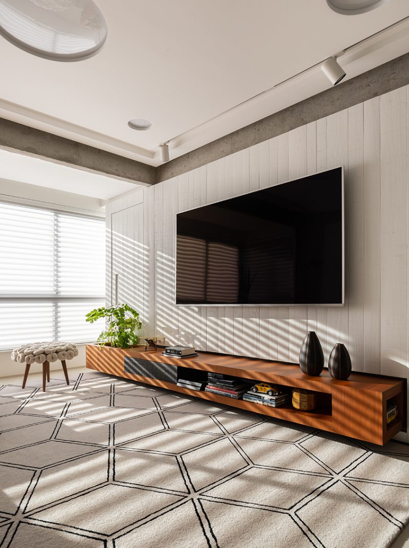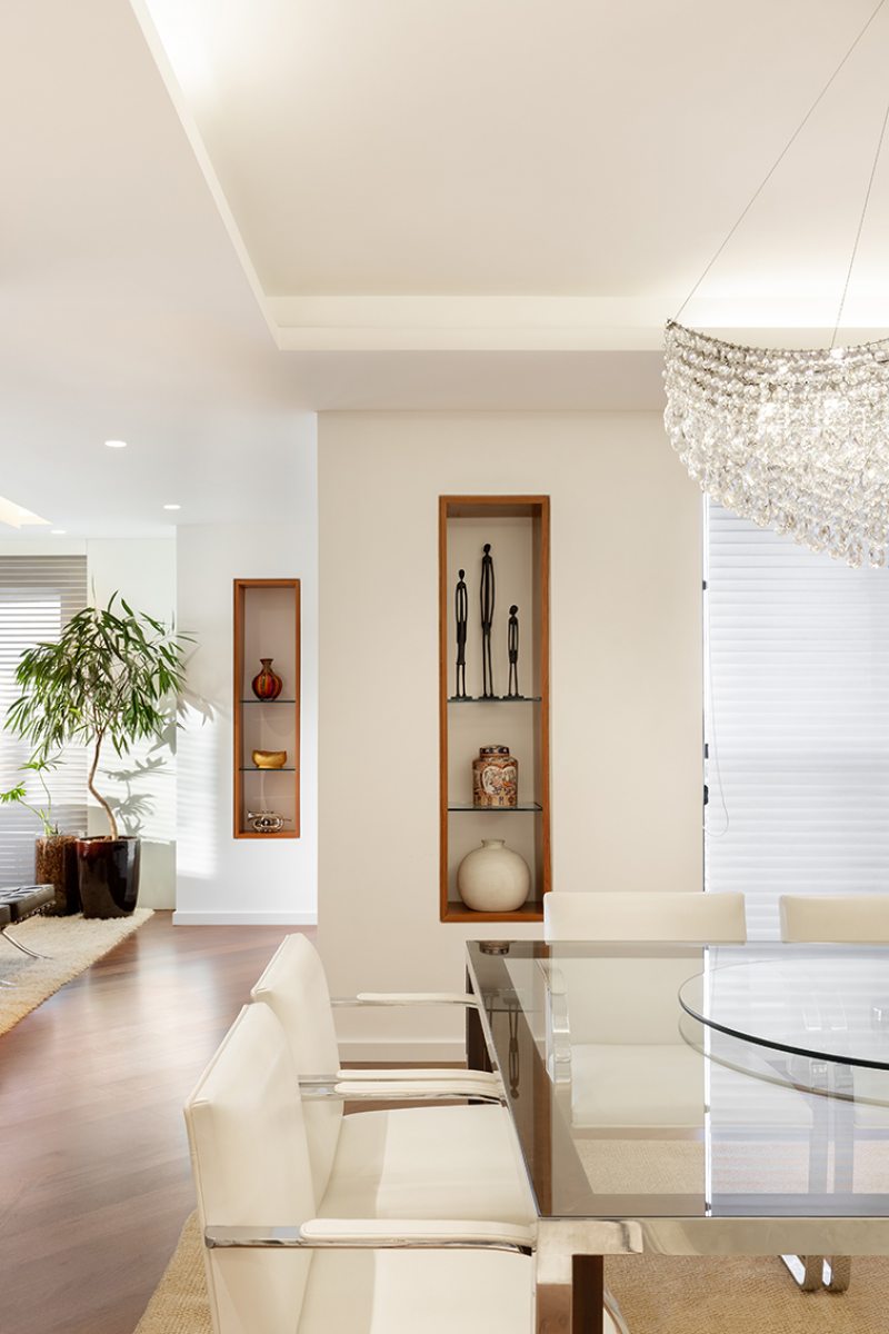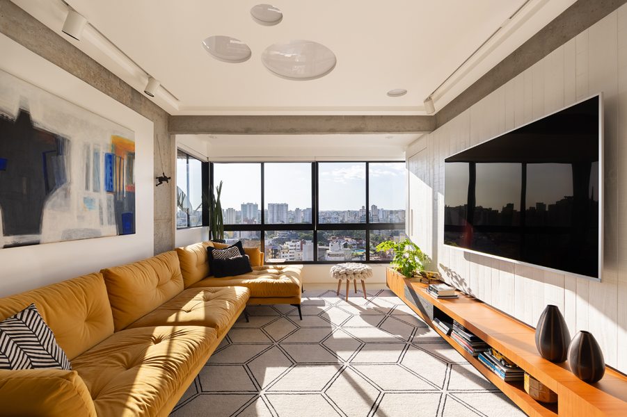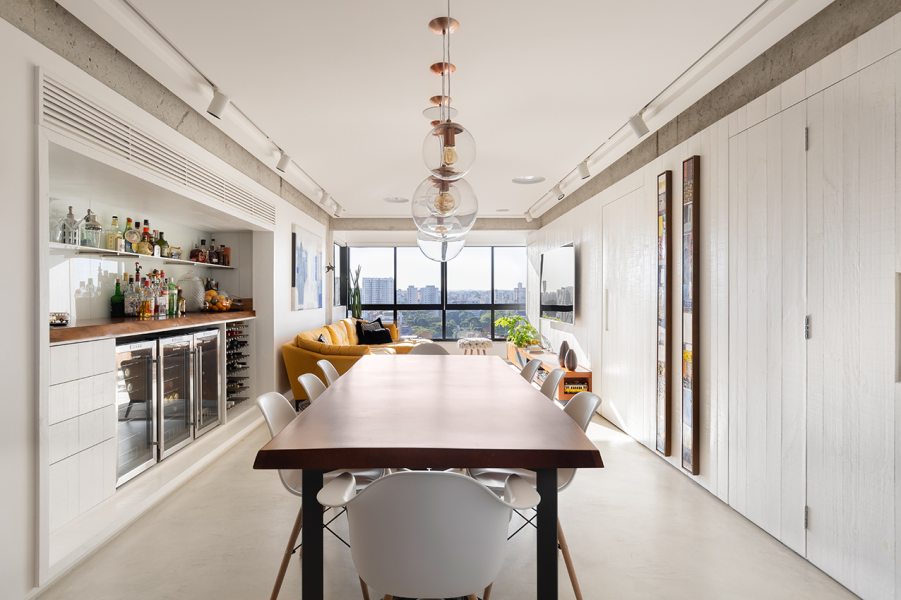 “Pensamos, para este novo período na vida do casal, uma arquitetura que gerasse maior integração dos espaços, combinado com o desejo deles, trazendo maior aproveitamento da luz natural em todos os momentos do dia. Para isso, desobstruímos as janelas e transformamos os espaços compartimentados em uma ampla área de convívio”, conta o arquiteto Luiz Volpato, que assina o projeto.