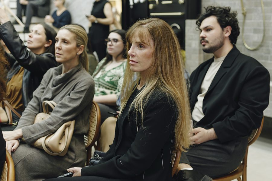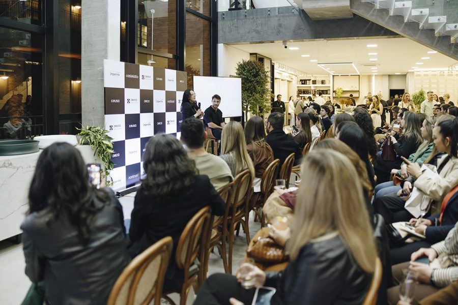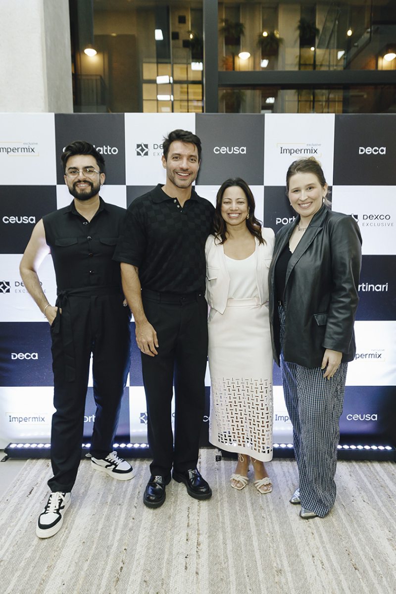 O ponto alto da noite foi a apresentação da coleção Maracangalha, desenvolvida em parceria com a Portinari. Nildo detalhou o processo de criação da linha de revestimentos, inspirado por uma imersão na cidade homônima, na Bahia. Cores, texturas e elementos da arquitetura local se transformaram em referência para compor uma coleção premiada, que traduz o diálogo entre memória, território e inovação.