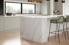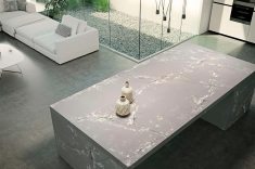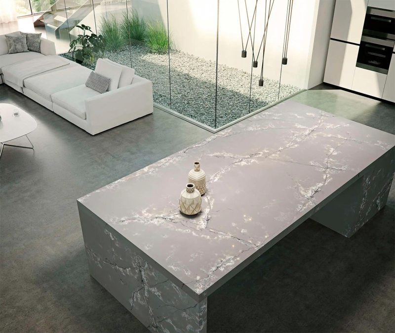 Quartzo industrializado – Silestone (superfície composta de quartzo e resina): boa resistência e grande variedade cromática, mas não tolera bem altas temperaturas.