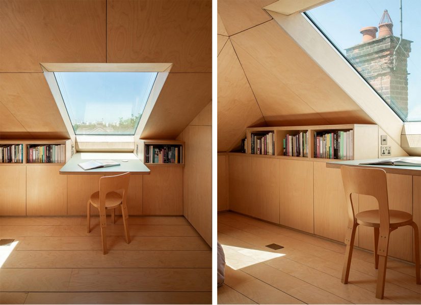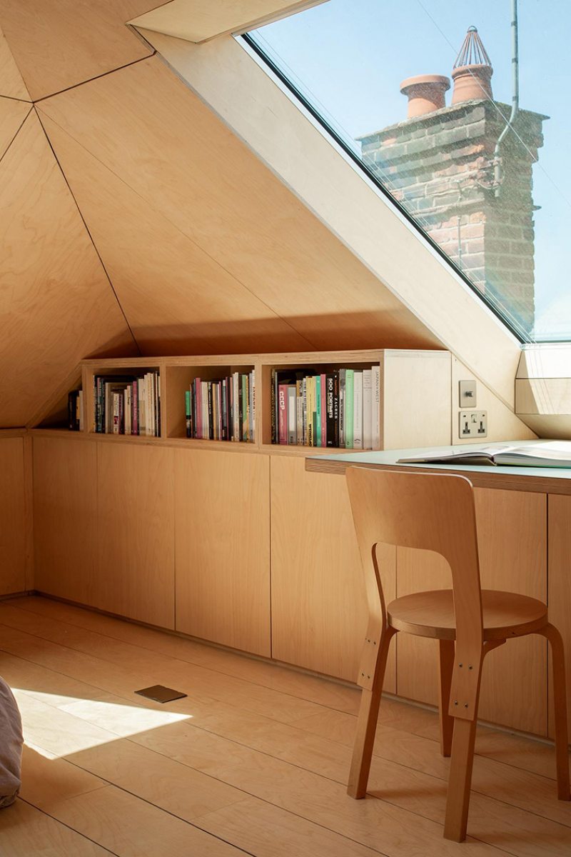 Era essa a situação do sótão antes negligenciado e relegado ao armazenamento, que foi cuidadosamente reinventado e transformado em quarto com banheiro e escritório. Assinado pelo escritório inglês Turner Architects, o antigo espaço foi completamente ressignificado. Em vez de ser lido como uma adição, o espaço parece incorporado à arquitetura existente, como se sempre estivesse esperando para ser descoberto.