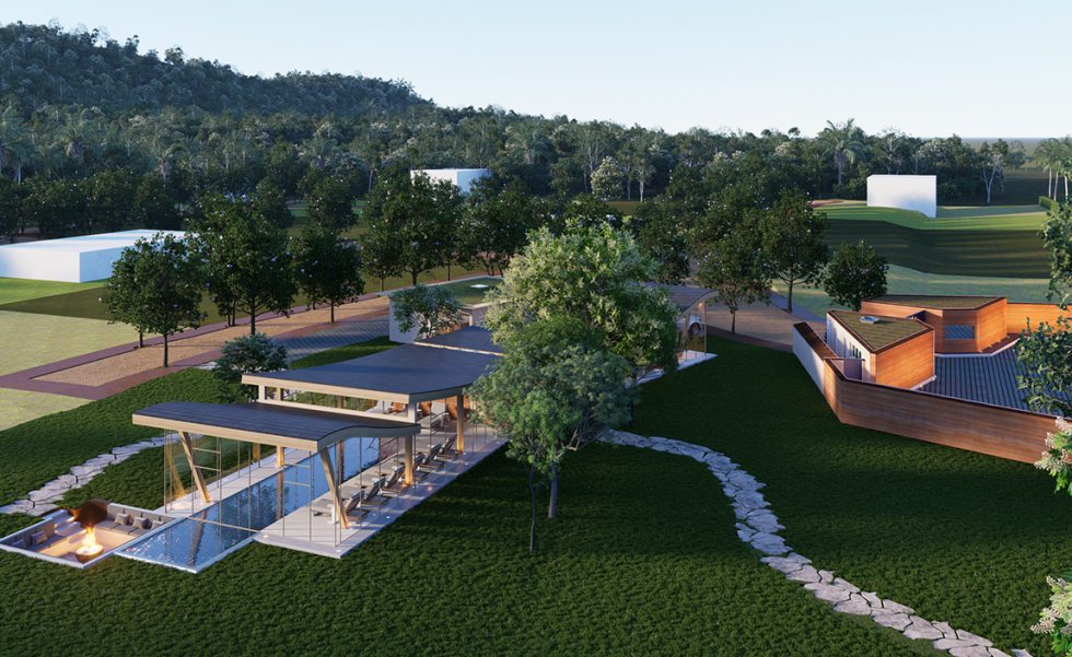 O empreendimento foi concebido a partir de um princípio claro de exclusividade e respeito ao território. São apenas 32 lotes, implantados em uma área de mais de 145 mil metros quadrados. Cada terreno possui mínimo de 1.200 m², somado a uma fração média de aproximadamente 2.780 m² de área de preservação, integrada em forma de bosque. Na prática, isso significa que cada moradia se relaciona diretamente com uma porção significativa de floresta, reforçando a sensação de imersão na paisagem e de privacidade.