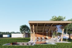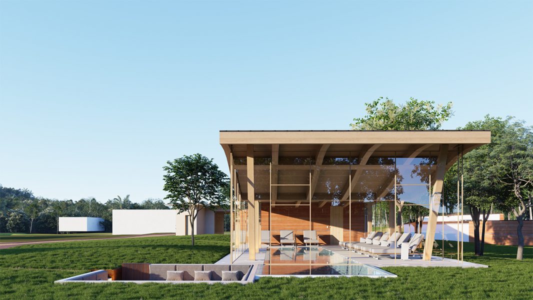 Do ponto de vista construtivo, o Arví segue diretrizes ESG desde a concepção. O projeto adota materiais certificados, como madeira com selo FSC, técnicas como taipa de pilão e madeira laminada colada nas áreas comuns, além de soluções de drenagem natural, ruas em saibro e jardins de chuva que favorecem a permeabilidade do solo. Cercas vivas permitem a circulação de animais, reforçando a integração com o ambiente natural.