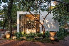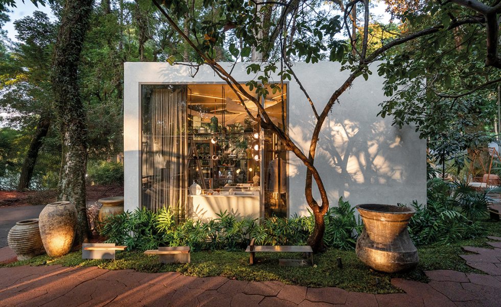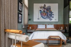O projeto ainda destaca obras de arte com curadoria assinada por Freneda em parceria com a galerista Denise Espada, além de colaborações com os artistas Helton Taveira e Cauê Scudeller. A presença de uma escultura em forma de vitória-régia, feita em homenagem à flor que marcou a juventude do designer, traz à casa um símbolo poético de afeto e origem.